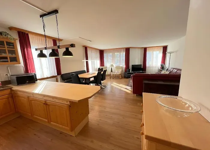 2-slaapkamer Ferienwohnung Bunda Residenz ligt op 20 minuten wandelen vanaf het Meer van Davos en biedt parkeerplaatsen voor degenen die met de auto reizen. Slechts een kort ritje van het 120 m^2 grote appartement ligt het congrescentrum Davos.